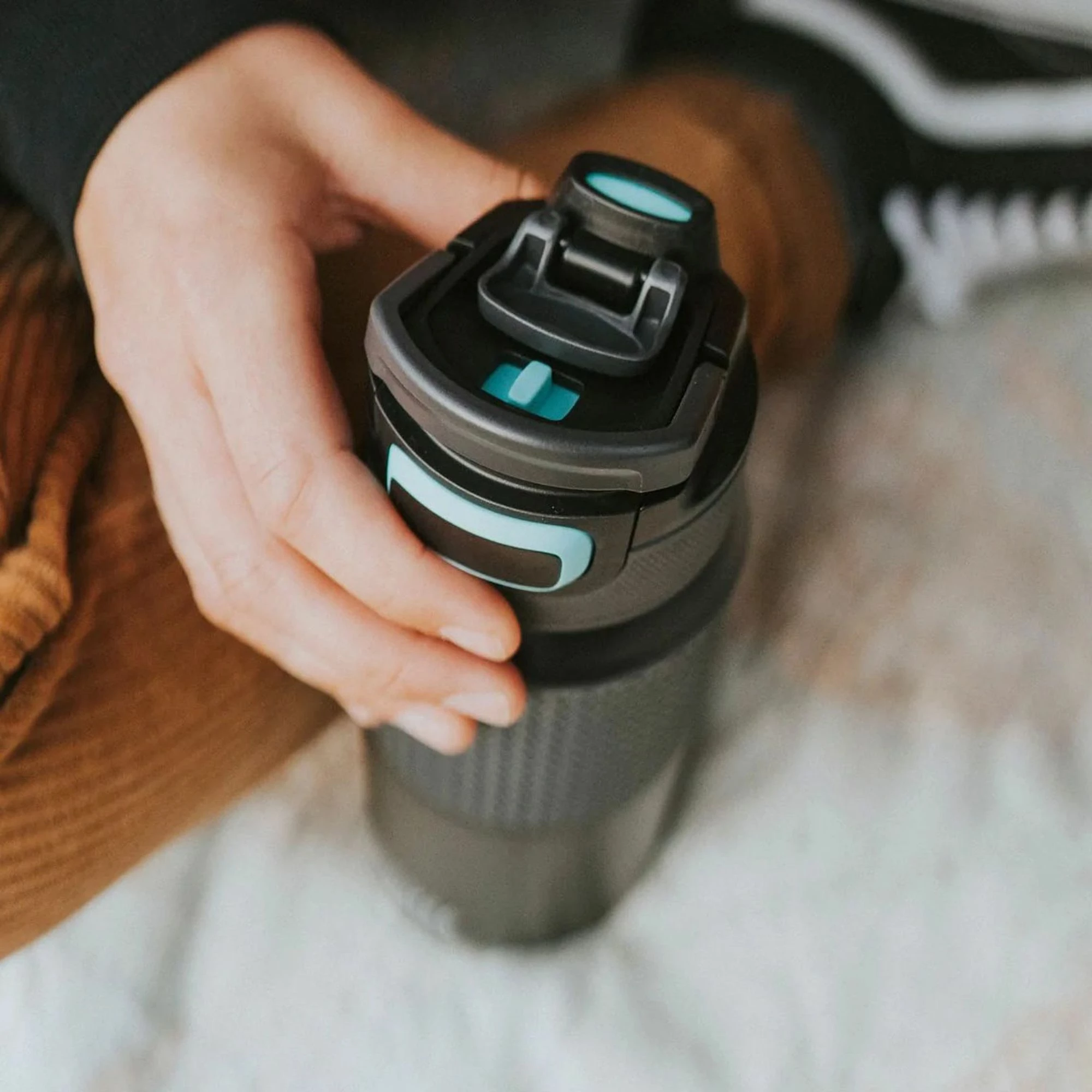 Snapclean Verschluss mit Druckknopf vereinfacht das Trinken, sorgt dafür dass der Becher leckfrei und leicht zu reinigen ist; 3-in-1 Verschluss mit verschiedenen Trinkpositionen